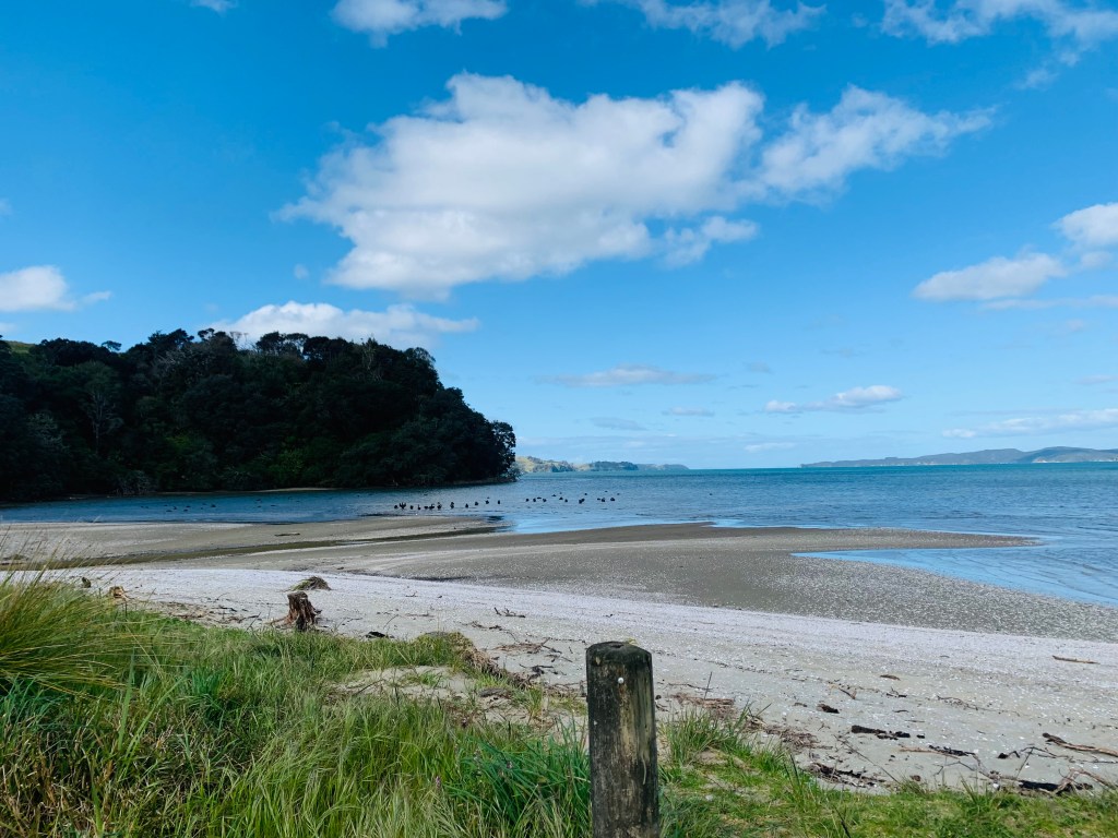 at the far end of the beach.